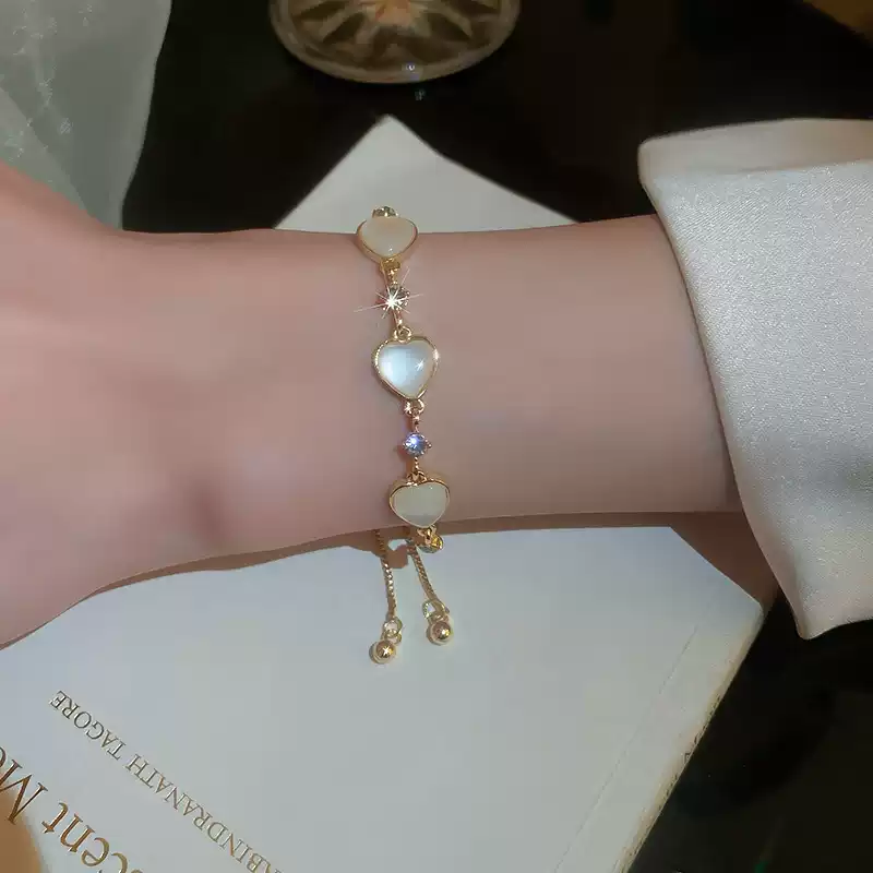 Heart Opal Rhinestone Gold-Plated Bracelet
