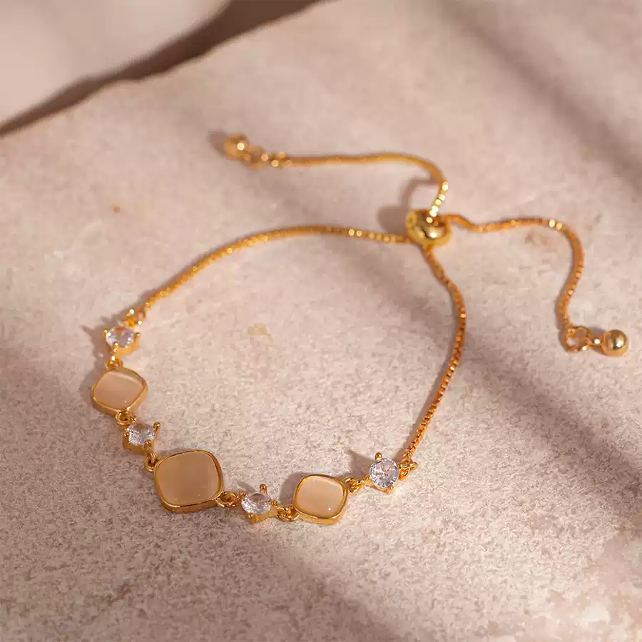 Retro Square Cat‘s Eye Opal & Zircon Slider Bracelet