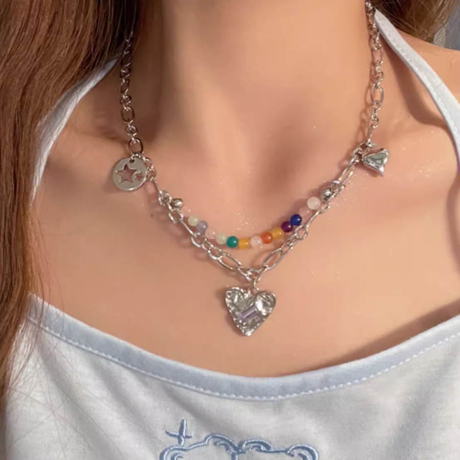 Double-Layer Titanium Steel Zircon Hip-Hop Collarbone Necklace