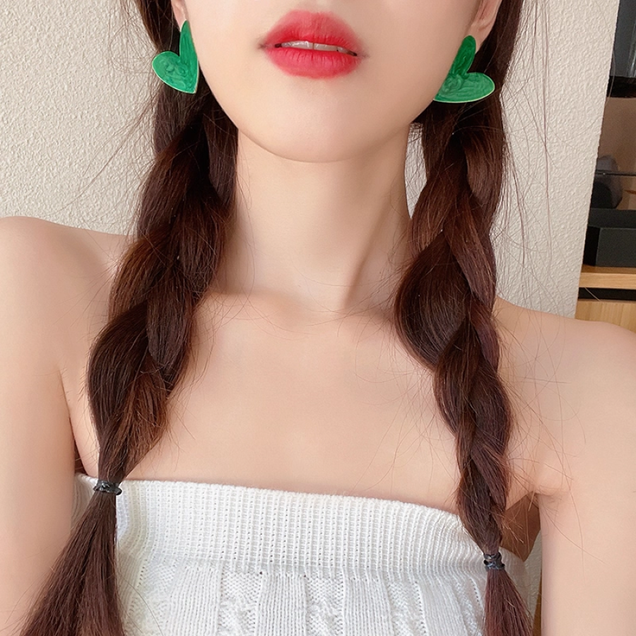 Vintage Green Heart Earrings Women 925 Silver Stud Pin