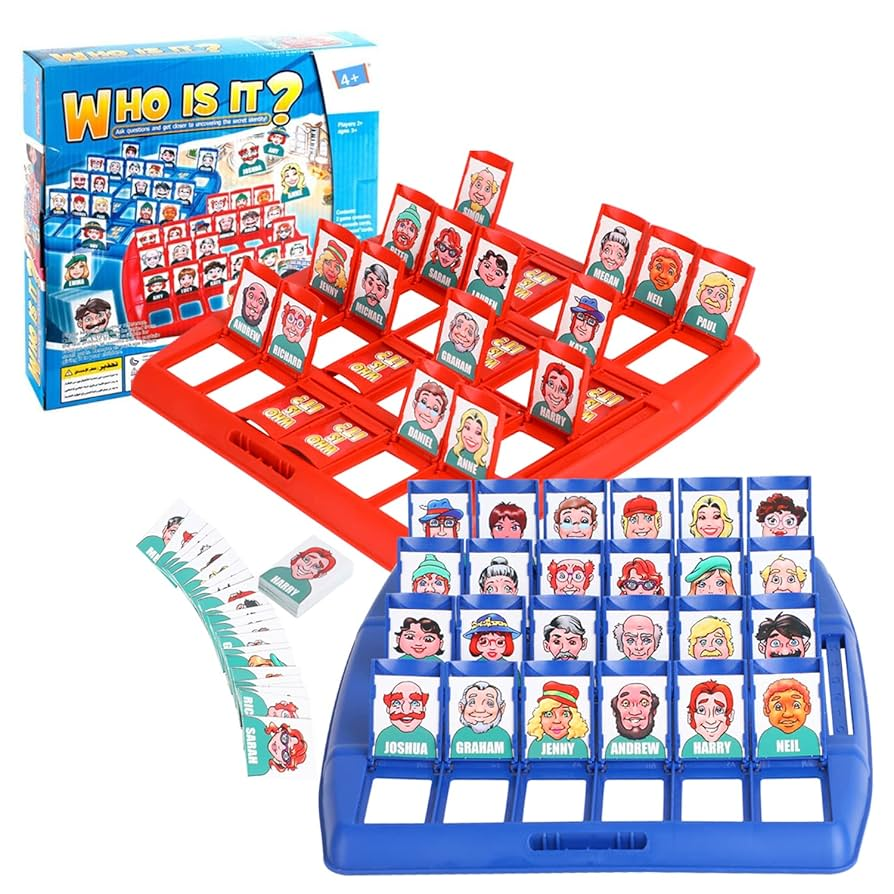 Classic guessing board game where kids ask yes/no questions to figure out the mystery character. Fun logic toy that improves reasoning, observation, and social skills.