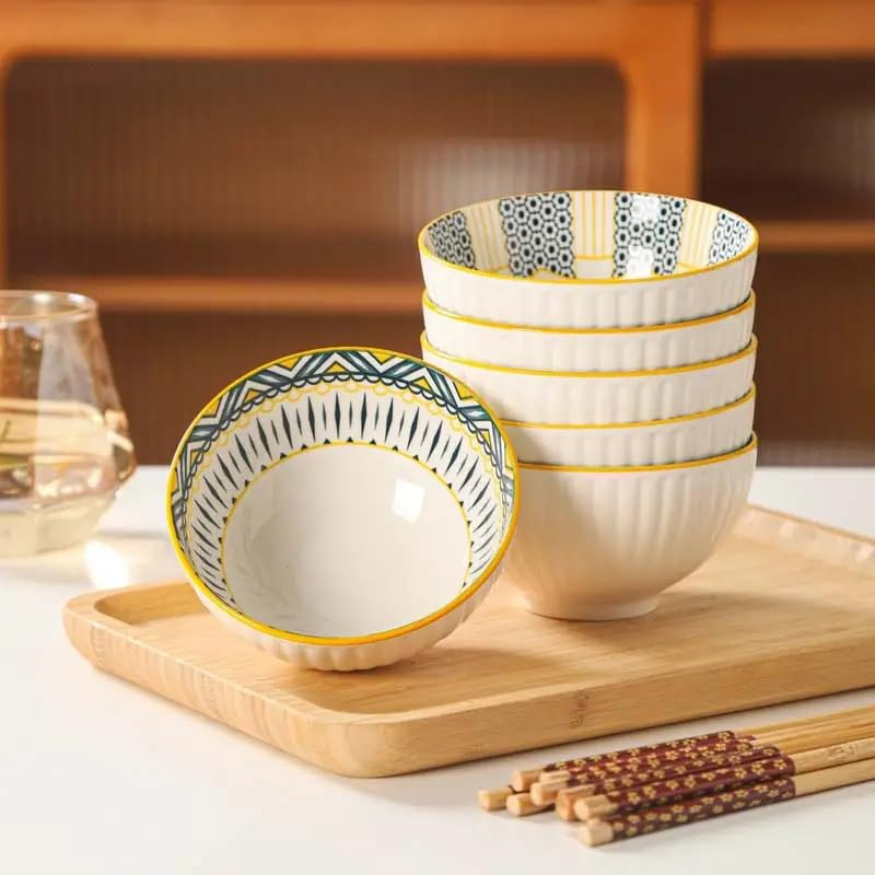 Elevate your dining experience with this elegant 4-piece Japanese ceramic bowl set. Each bowl features a distinct, hand-painted pattern within the inner surface, finished with safe, durable underglaze color. Made from thickened, reinforced porcelain, these bowls are anti-scald, highly durable, and safe for use in the oven, microwave, and dishwasher.