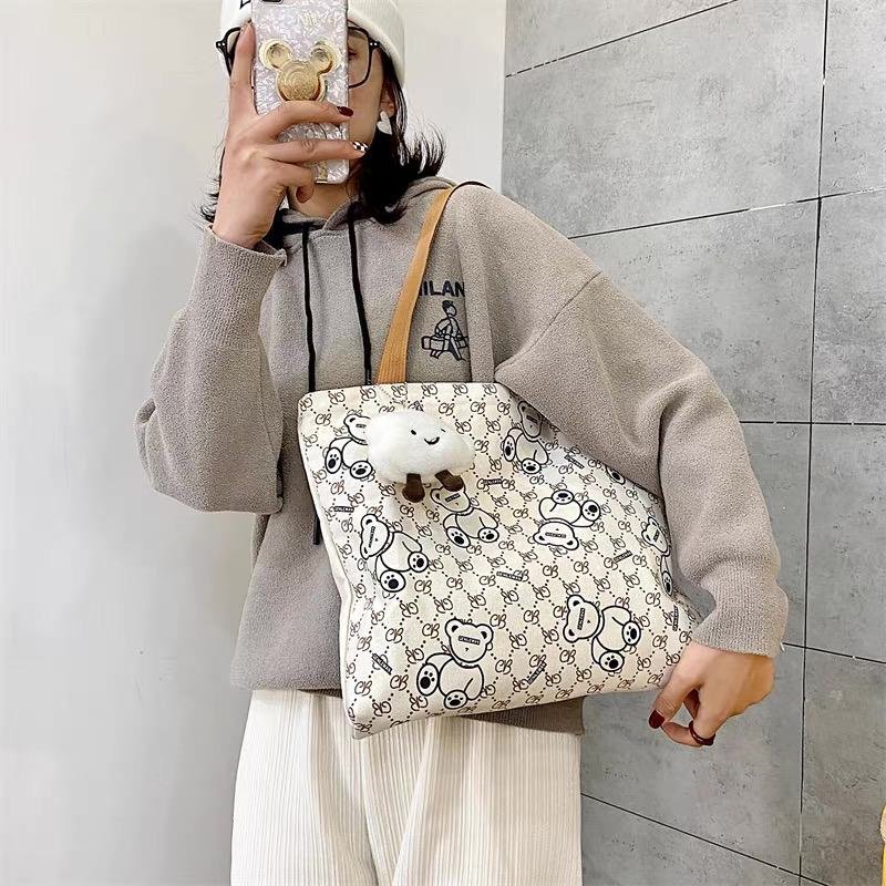 Letter Print Canvas Tote Bag with Zipper & Coin Pocket