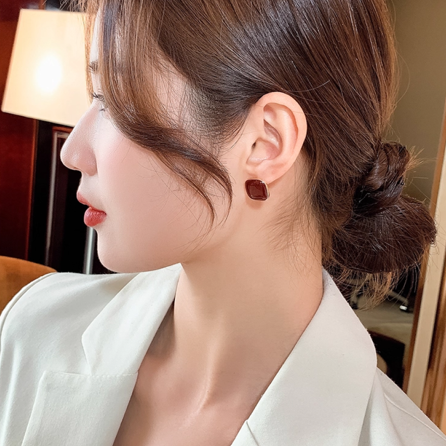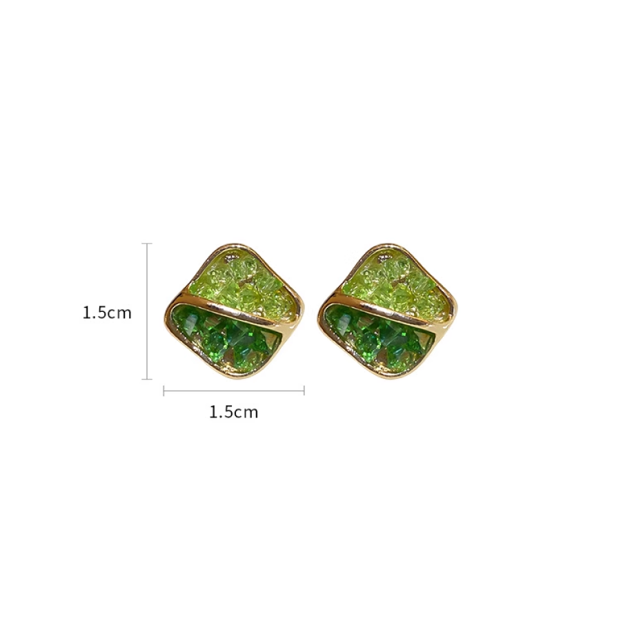 Vintage Color-Block Crystal Square 925 Silver Stud Pin Earrings