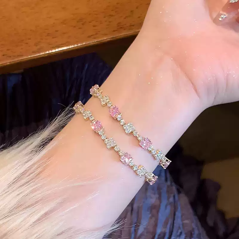 Staggered Pink Zircon Full-Pave Clasp Bracelet