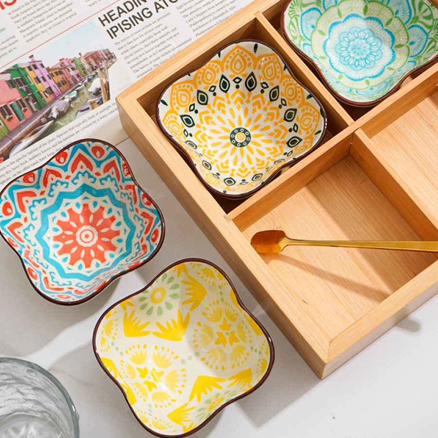 Mandala Square Ceramic Dipping Dish Sauce & Appetizer Plate