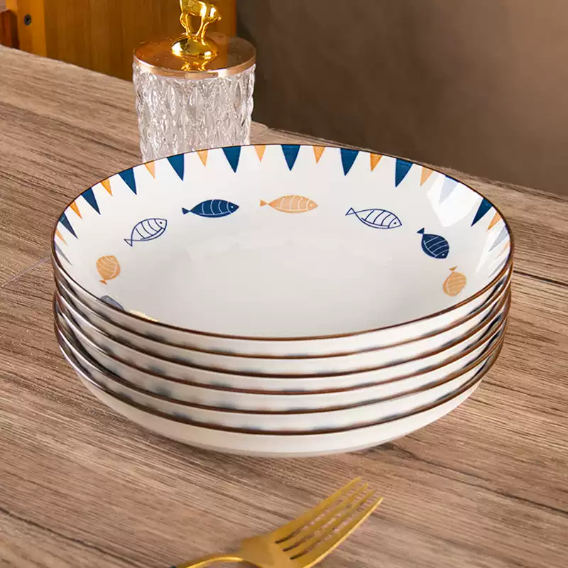 Two-Tone Fish Pattern Ceramic Deep Plate 8-Inch