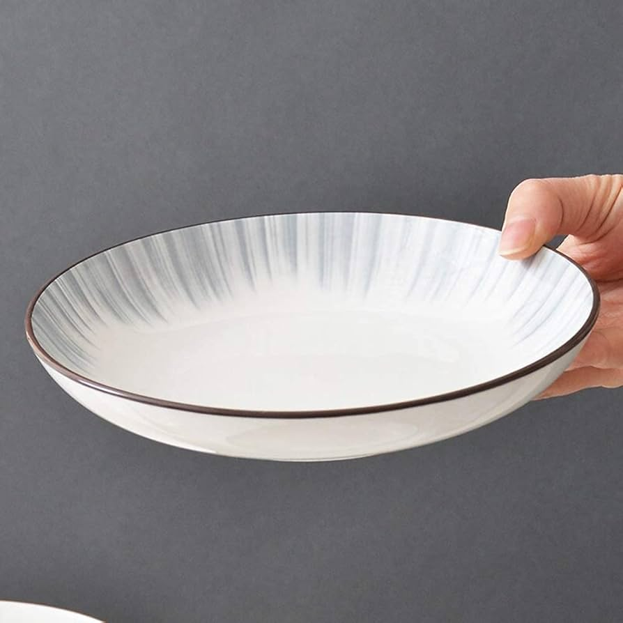 Minimalist Gray Stripe Ceramic Deep Plate 8-Inch Serving Dish