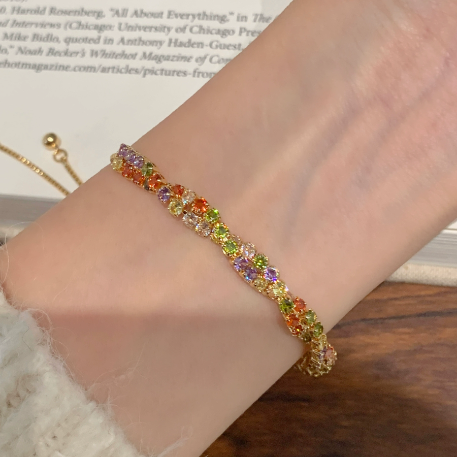 Rainbow Colorful Zircon Adjustable Slider Bracelet