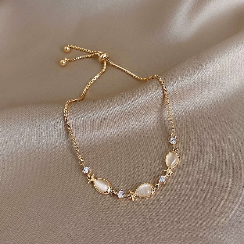 Three Little Fish Cat’s Eye Pendant Gold Adjustable Bracelet