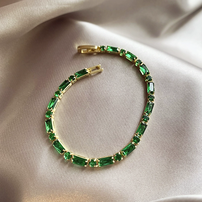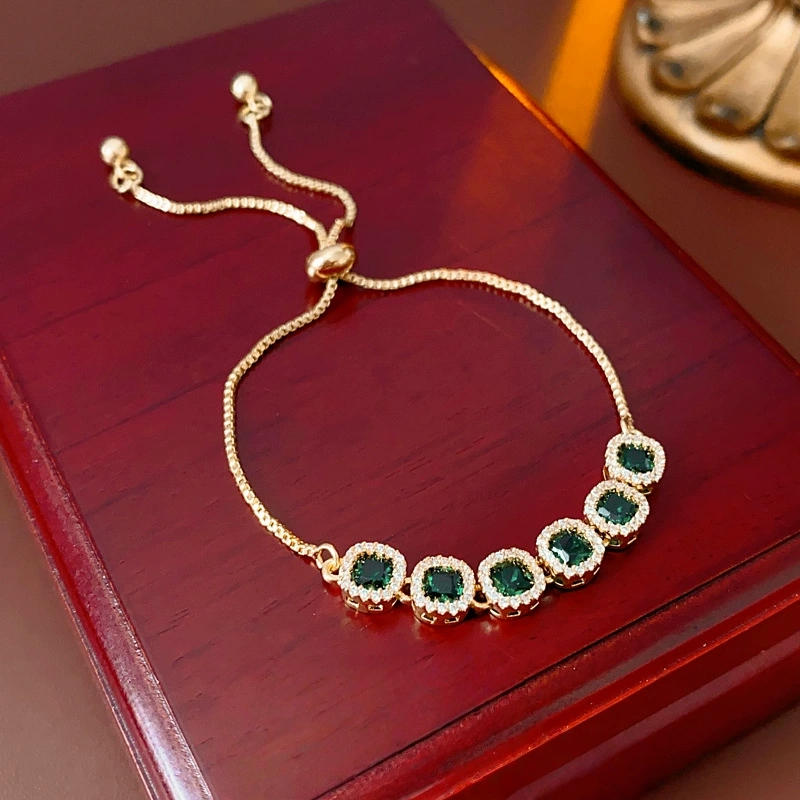 Square Emerald Green Zircon Strand Adjustable Bracelet