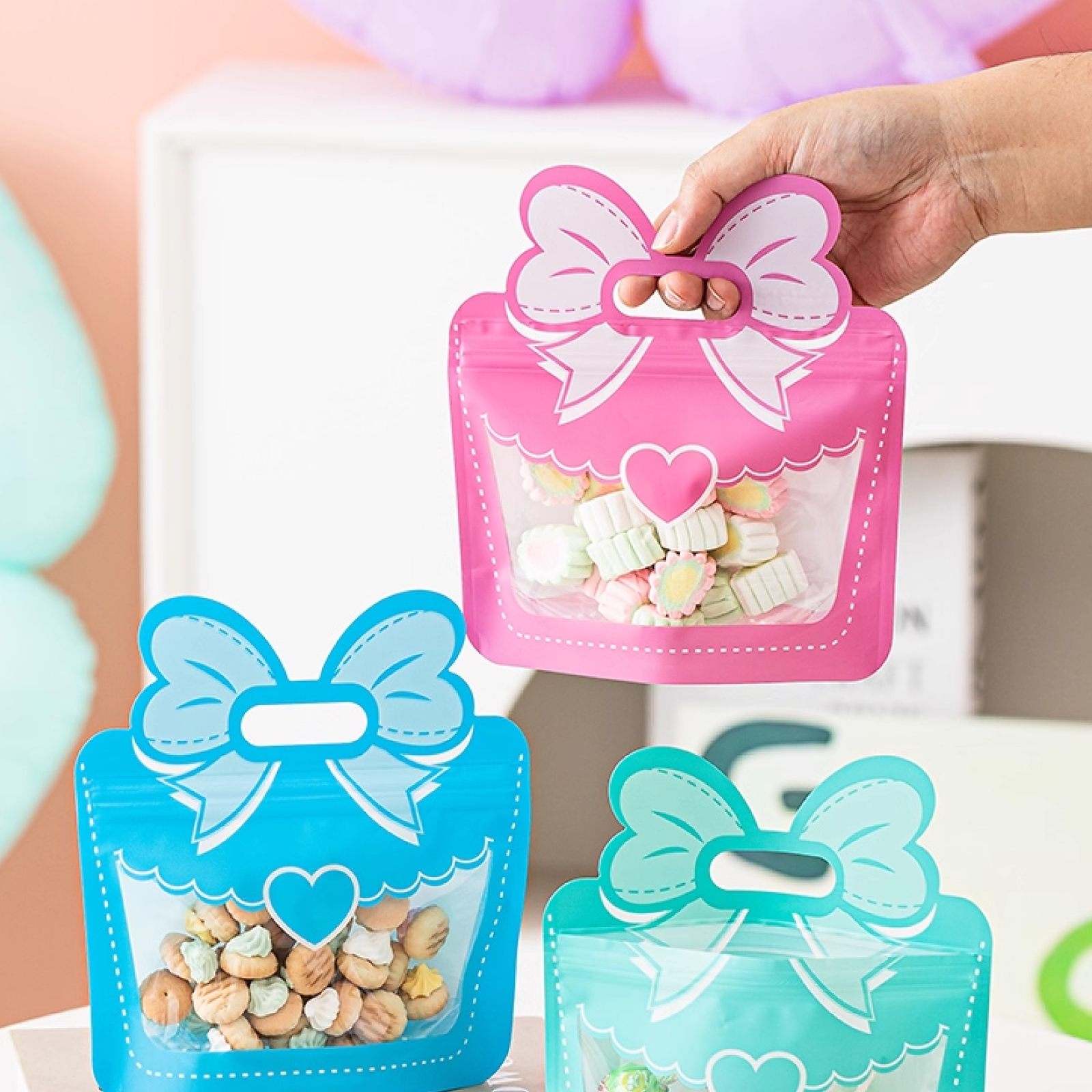 Cute Bow Handle Gift Bag Stand-Up Pouch for Kids Favors, Snacks & Toys